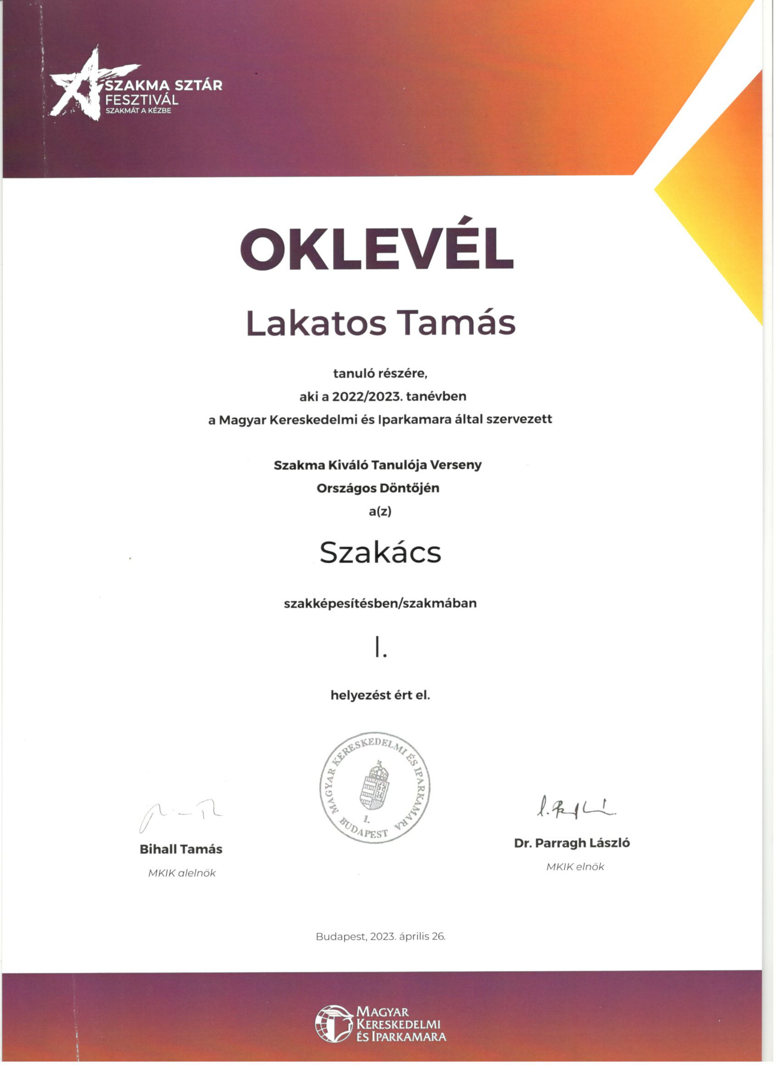 Lakatos Tamás, a #Gourmand iskola, végzős szakács tanulója, MEGNYERTE a 2023-as #SzakmaSztár versenyt! Kiváló felkészítő tanára: Jarábik Zoltán. Gratulálunk Mindkettőtöknek!